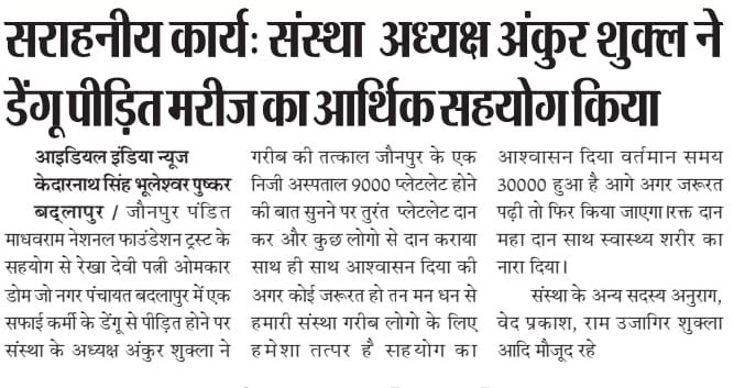 P. Madhavram National Foundation के प्रति उनके उत्कृष्ट सहयोग, समर्पण, निष्ठा एवं सामाजिक सेवा के क्षेत्र में सराहनीय योगदान के लिए प्रदान किया जाता है। आपके द्वारा संस्था के उद्देश्यों को सशक्त बनाने तथा समाज हित में किए गए कार्य अत्यंत प्रेरणादायक हैं। हमें पूर्ण विश्वास है कि भविष्य में भी आपका मार्गदर्शन एवं सहयोग संस्था को नई ऊँचाइयों तक पहुँचाएगा। आपके उज्ज्वल भविष्य की कामना के साथ यह प्रशस्ति पत्र प्रदान किया जाता है।